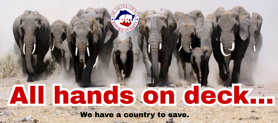 We know what lies ahead. We know what we must do. We have the numbers, we have the power, but every single one of us must do something to help the “America First” part of the Republican Party. Our Saluda Party is working hard, but we need help.